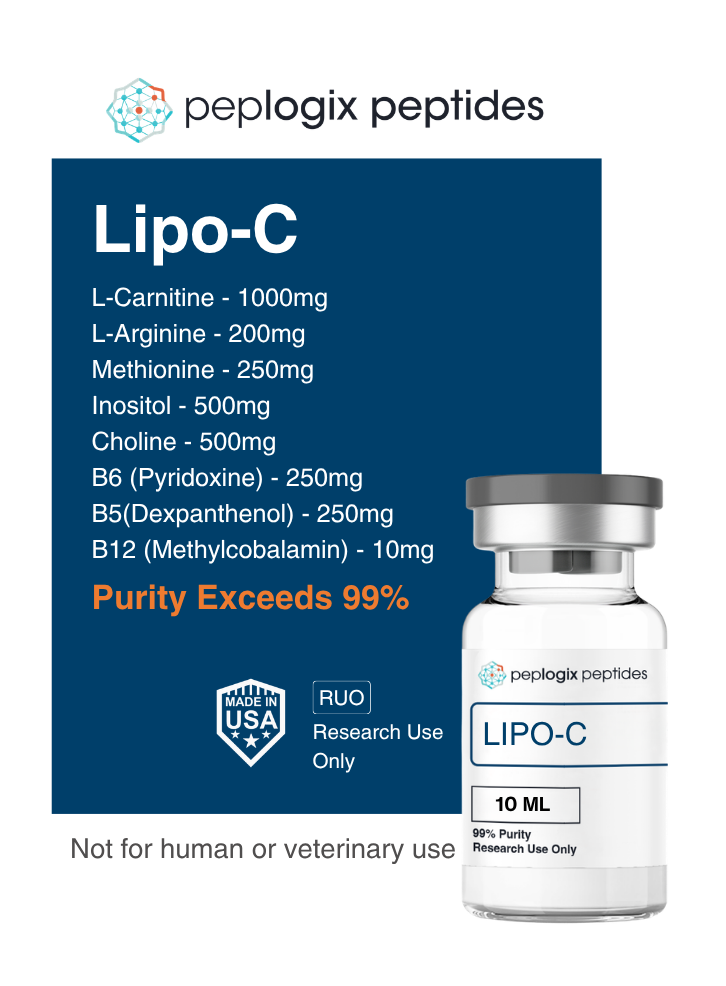 Lipo-C (Reconstituted) – 10ml is a research-grade metabolic support formulation studied for its role in supporting lipid metabolism and cellular energy processes. This formulation is designed to help promote efficient nutrient utilization, support metabolic activity, and maintain balanced cellular function. Lipo-C is researched for its potential influence on pathways related to fat metabolism, energy production, and metabolic efficiency, making it a compound of interest for studies focused on metabolic optimization, energy balance, and overall cellular health.